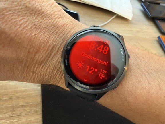 If we start with running, it is the watch's main event. One of my first training sessions with the Garmin Forerunner 970 is in the evening in Helsinki, a run I see a bit as a sightseeing tour, even though it's dark and I can hardly see much of the surroundings. When I start the session, the watch asks if I want to use the built-in lamp's flashing function to ensure that I am visible in the dark. I say yes.